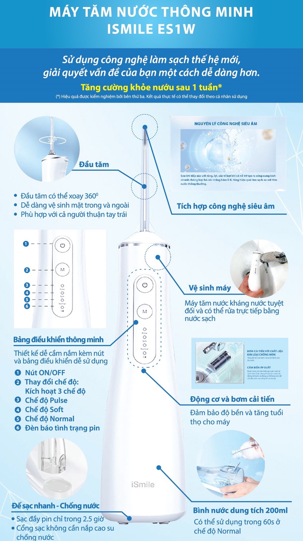 Những ưu điểm nổi bật của tăm nước thông minh iSmile ES1W: