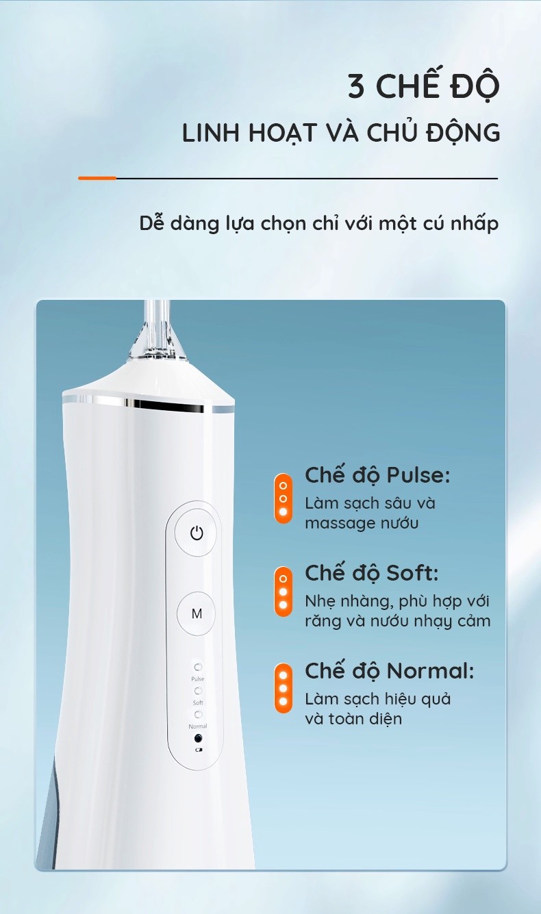 ✔ Chế độ nước: 03 chế độ Normal – Soft – Pulse
