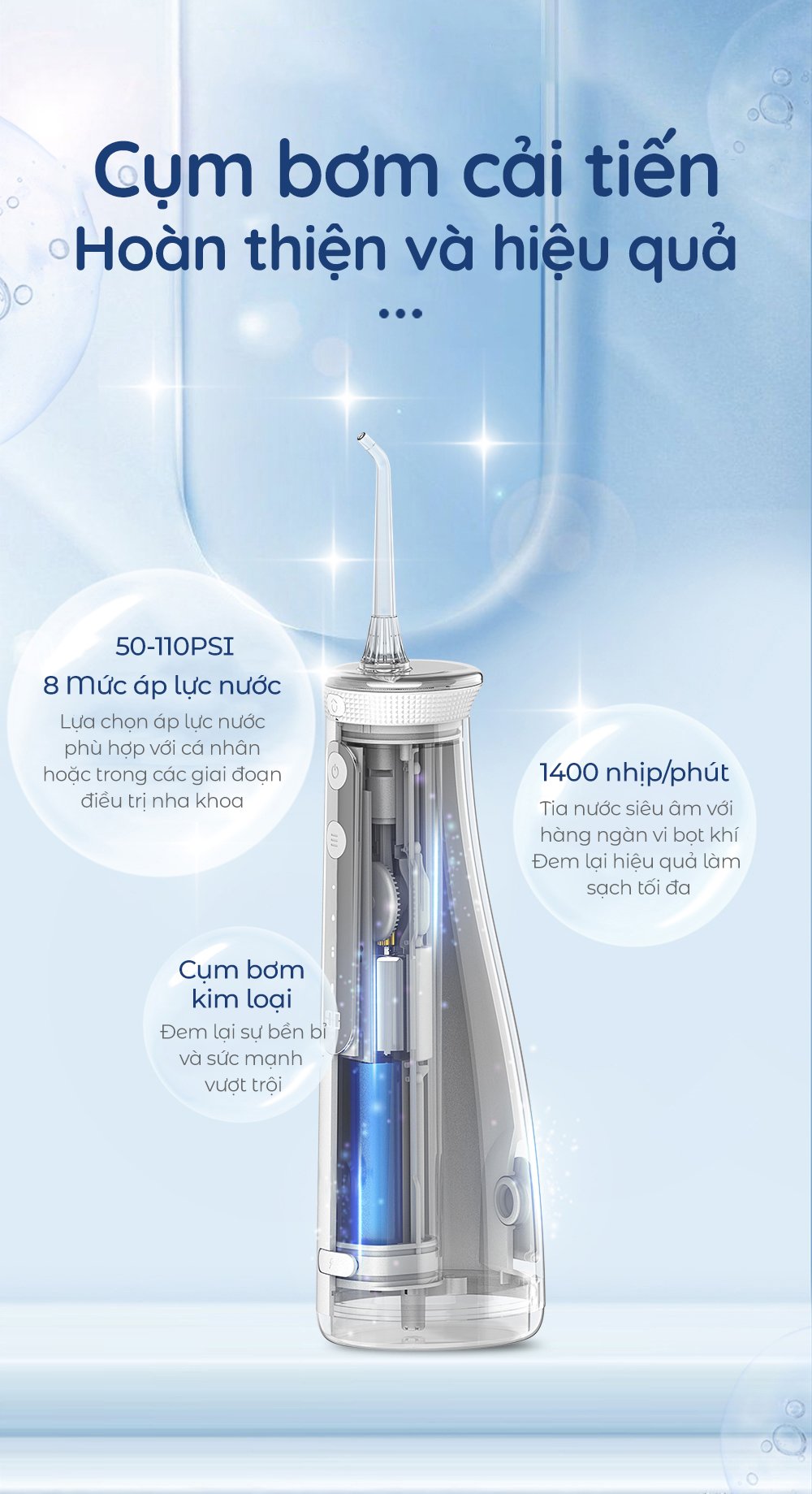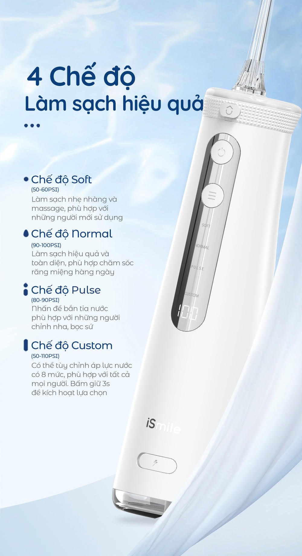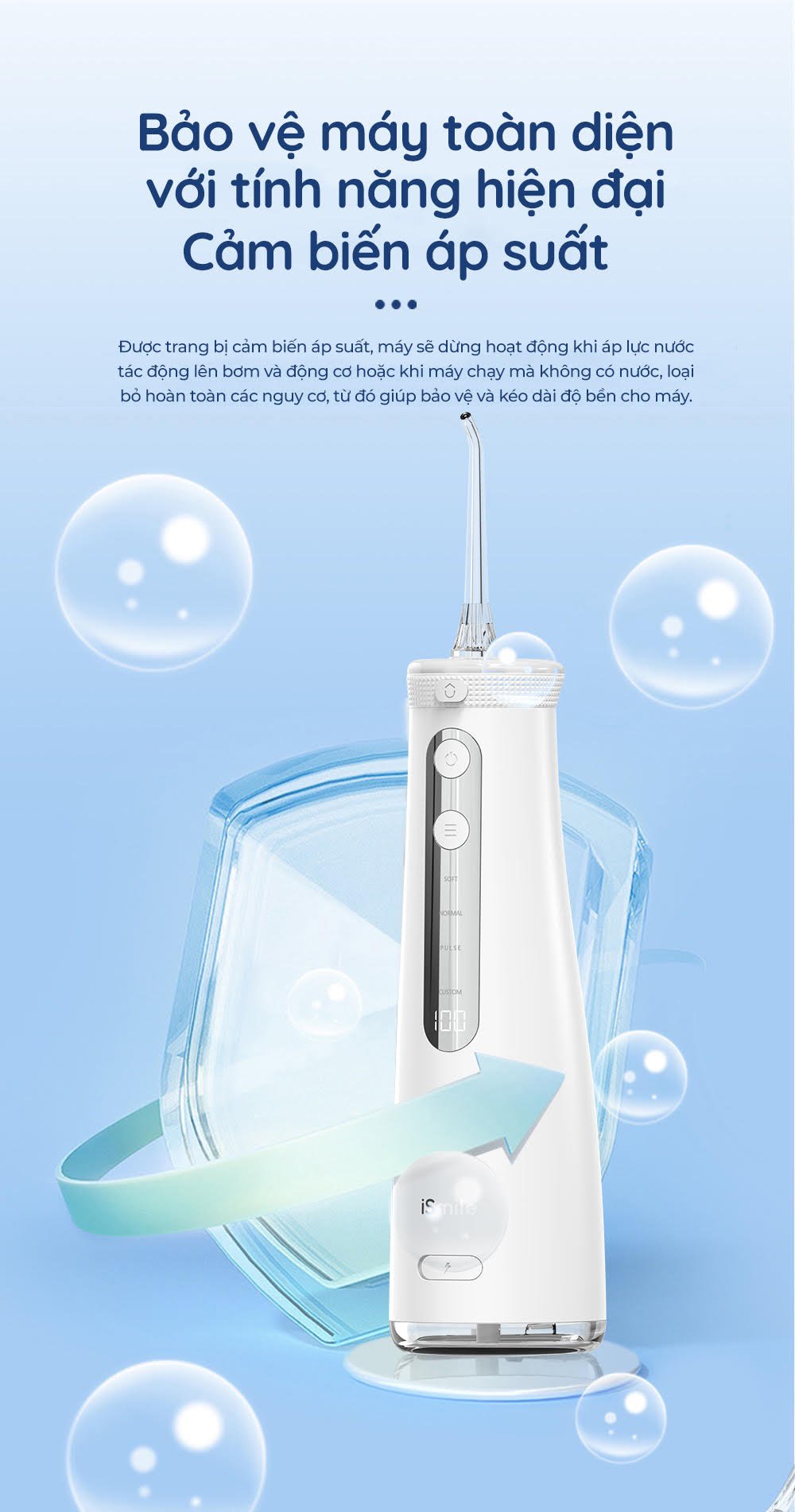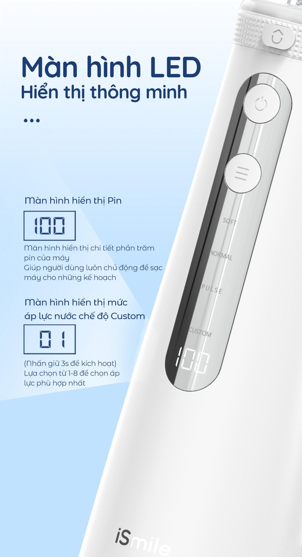 Máy Tăm Nước Thông Minh iSmile ES50 - Màn Hình LED - Công Nghệ Siêu Âm - Cảm Biến Áp Suất -Vệ Sinh Răng Niềng, Chỉnh Nha