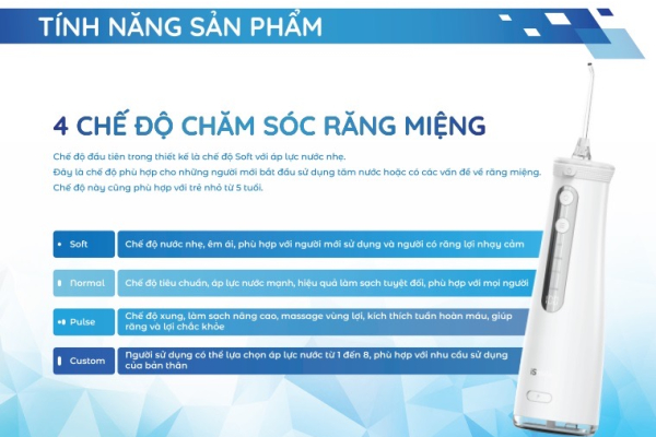 Do đó, sử dụng Máy tăm nước iSmile ES50 là phương pháp hiện đại và tối ưu nhất giúp vệ sinh răng miệng sạch sẽ.