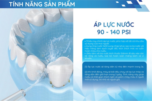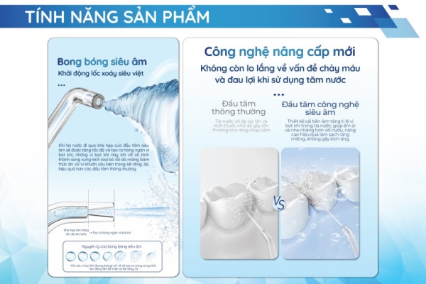 Các nha sĩ thử nghiệm trực tiếp và phê duyệt về hiệu quả làm sạch của sản phẩm. Máy tăm nước công nghệ siêu âm của chúng tôi loại bỏ hoàn toàn mảng bám, vi khuẩn và các tác nhân gây hại tới răng miệng, giúp răng và nướu luôn khỏe mạnh. Giải pháp toàn diện cho sức khỏe răng miệng.
